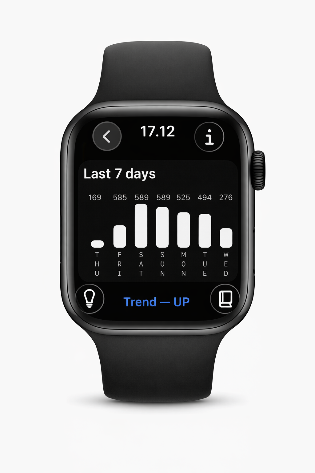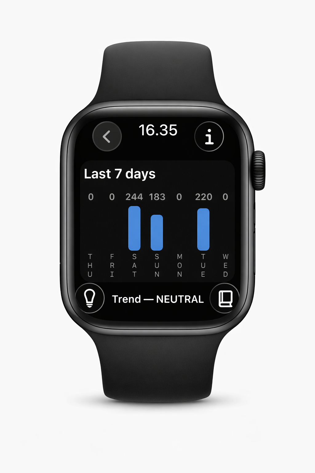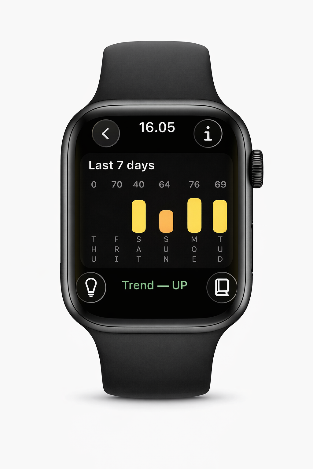 Your Apple Watch is the source of truth. The iPhone companion gives you a bigger view: track key metrics, manage your subscription, and learn what each metric means.